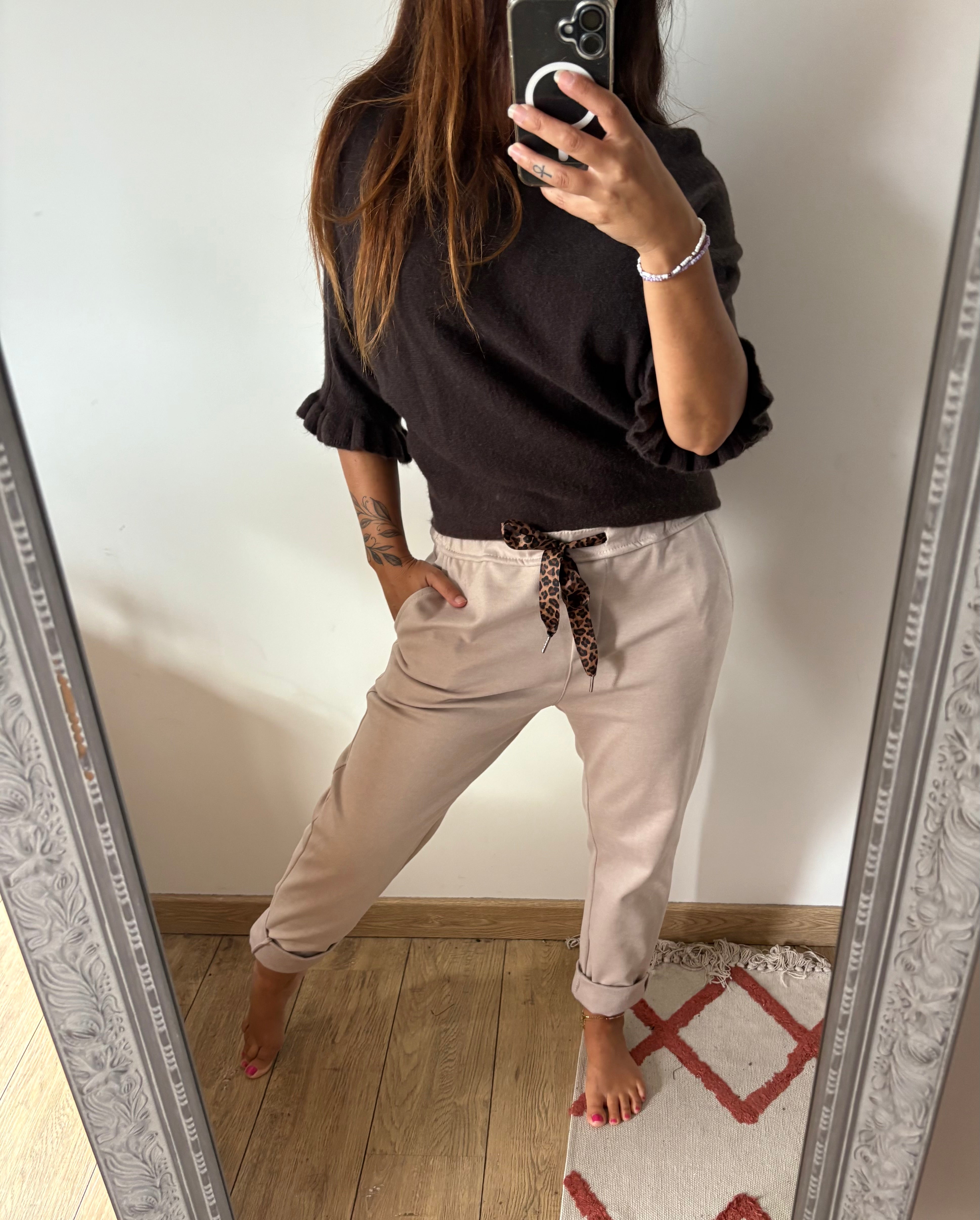 Pull manches froufrou chocolat